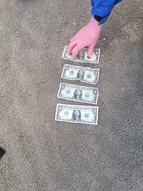 called with a crawl into the myrtles between Boardwalks 2 and 3. Mark Doane and Sandi MacCoss responded and probed the 3 body pits. Alas, all they found were the remains of a nest from a prior year. On South Beach, walkers Melanie Jerome, Gayle Evans, Liz Haggerty & Anne Snelgrove didn’t find any crawls on but they did find 4 – $1 bills at the end of the rainbow.
